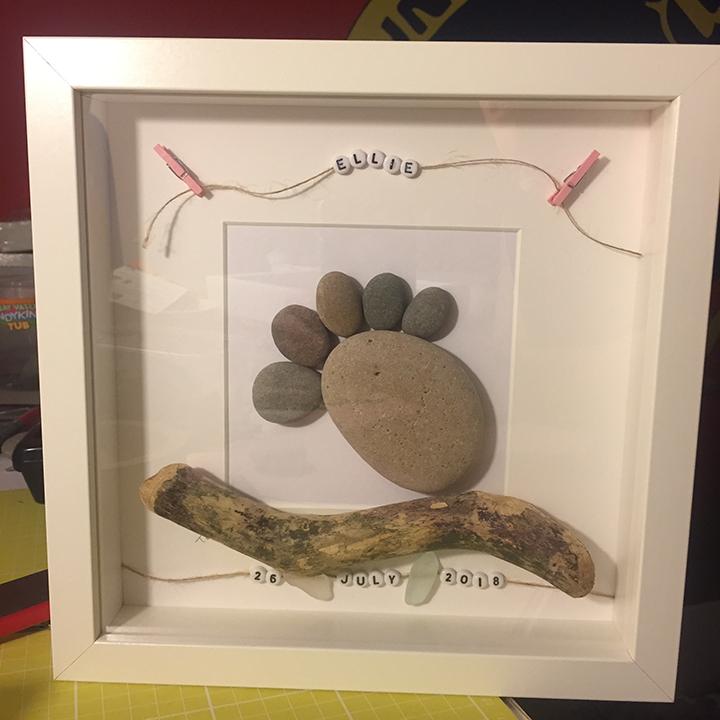 There are so many different baby pebble art creations I have made. From christening, Christmas and to just the simplicity of the baby's foot. Have a look at some samples.